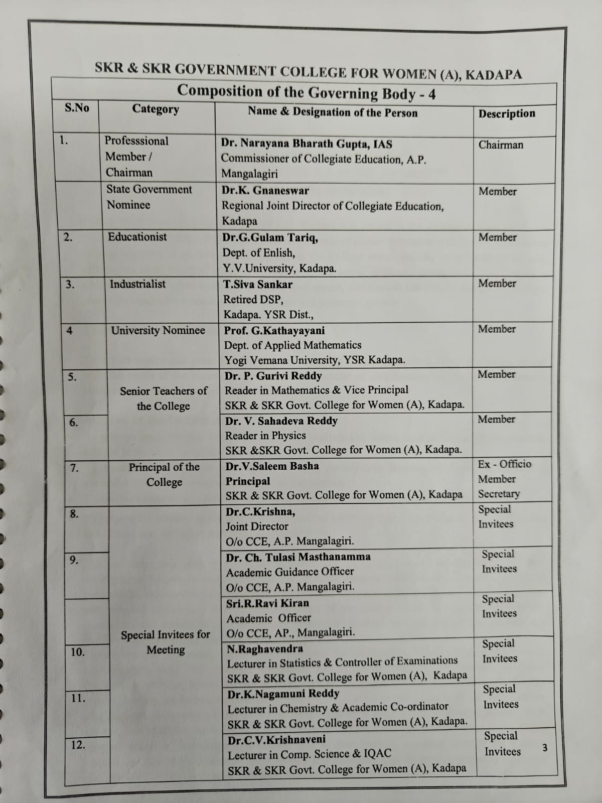 Dr. P. Subba Lakshumma Principal, SKR & SKR Govt. College for Women YSR Kadapa- 9951461047 (M). |