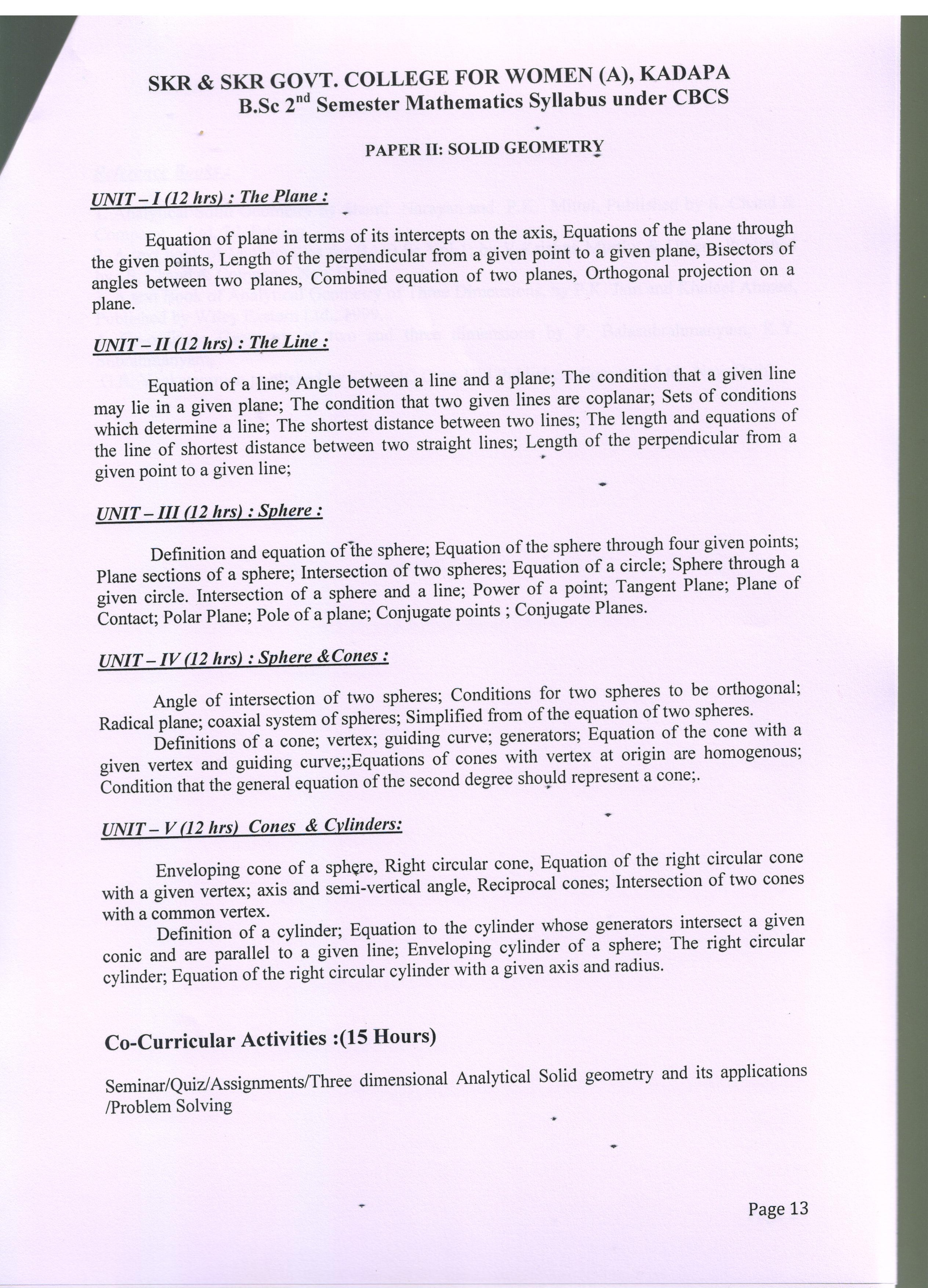 I B.Sc SEMESTER-II SOLID GEOMETRY |