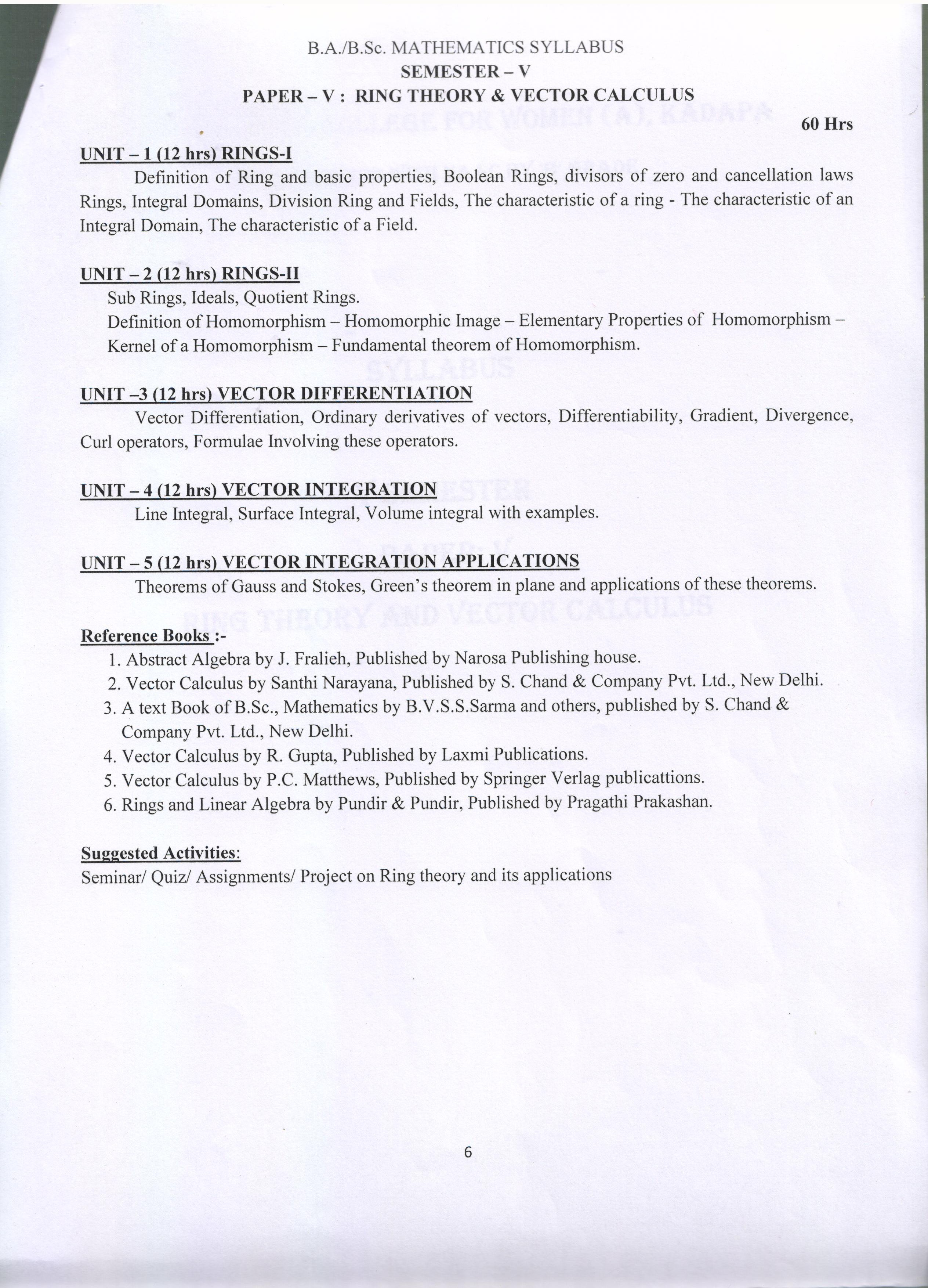 III B.Sc SEMESTER-V RING THEORY & VECTOR CALCULUS |