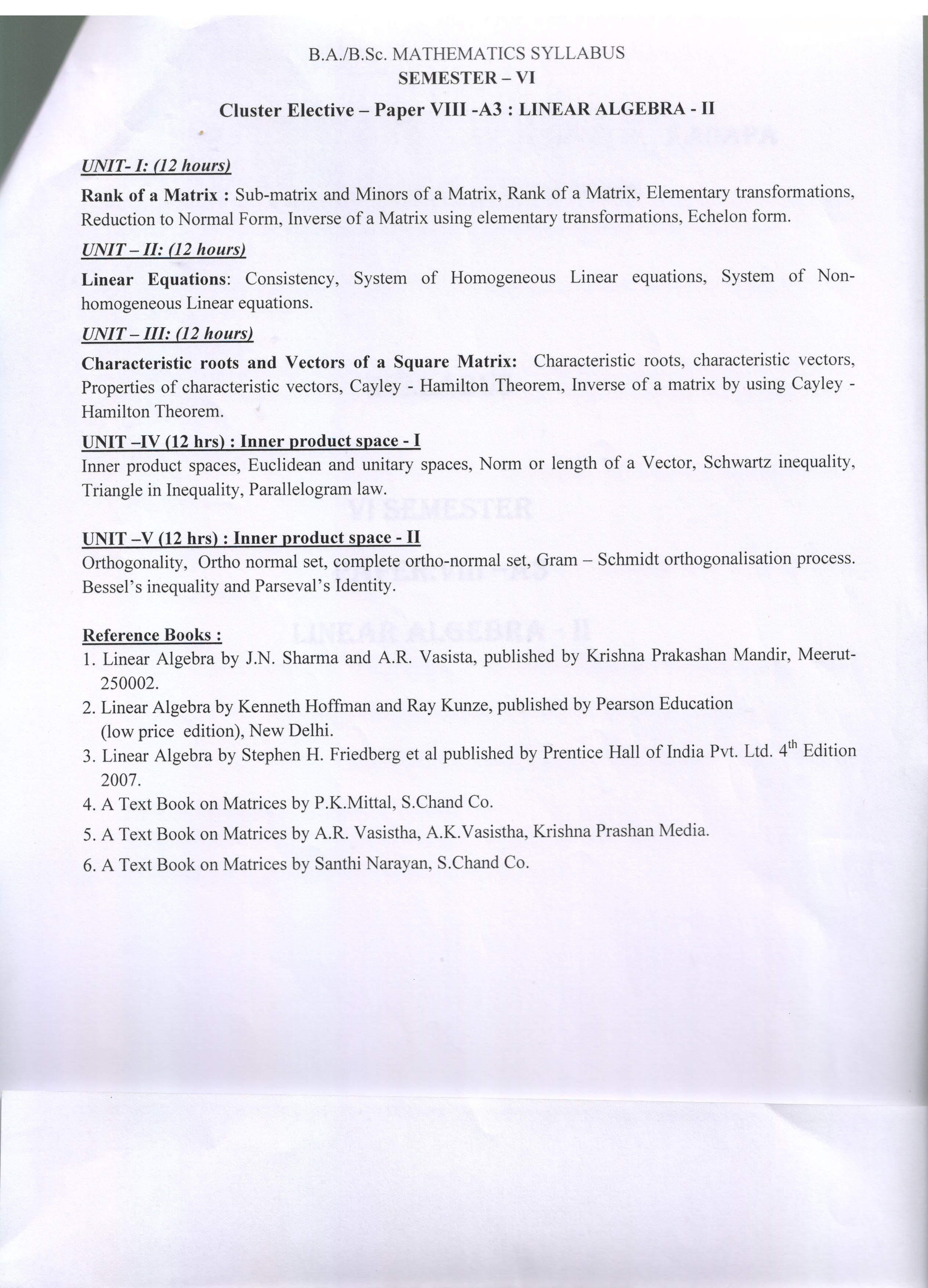 III B.Sc SEMESTER -VI-CLUSTER VIII-A3-LINEAR ALGEBRA-II |