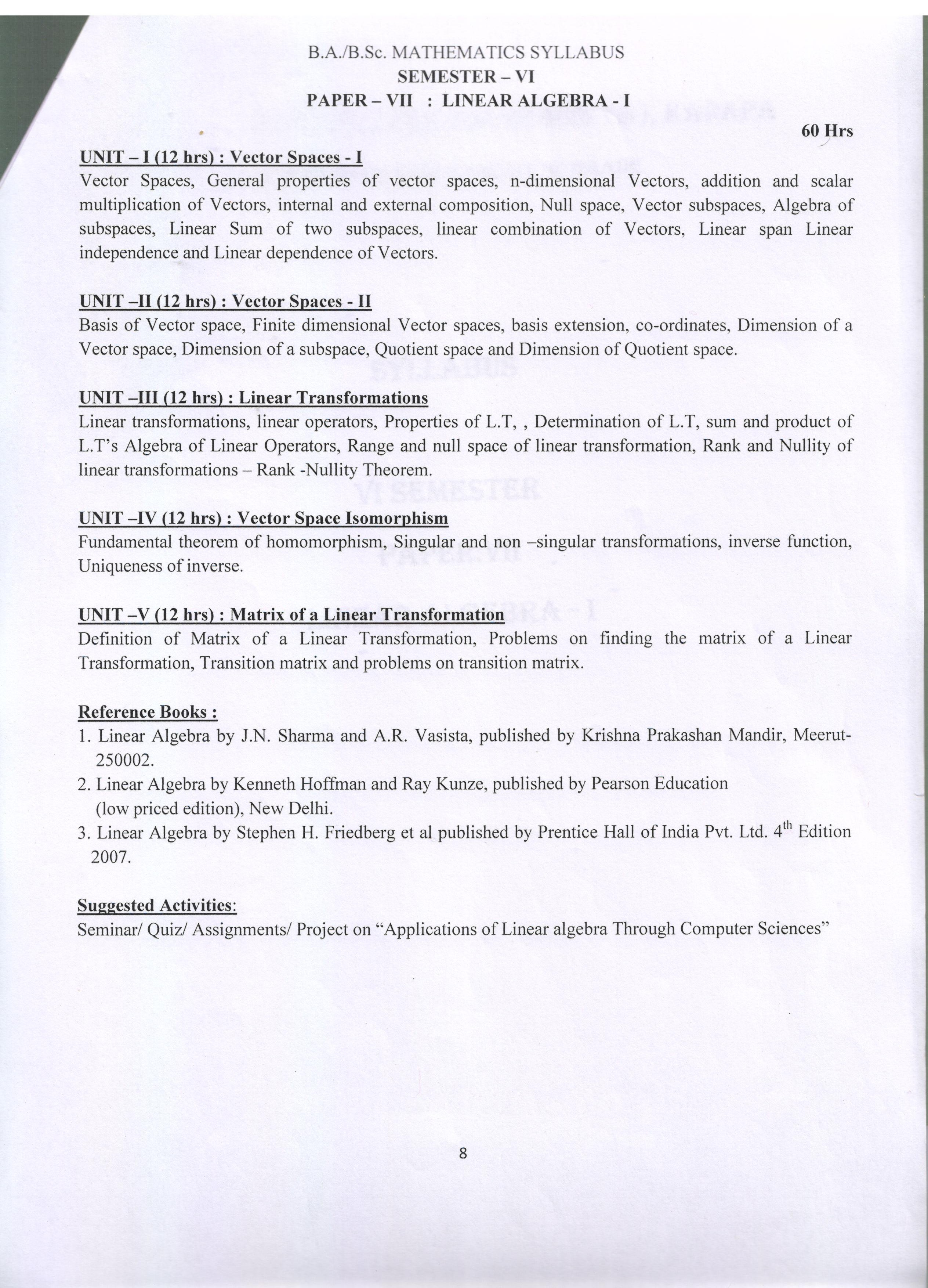 III B.Sc SEMESTER-VI(PAPER VII)-LINEAR ALGEBRA-1 |