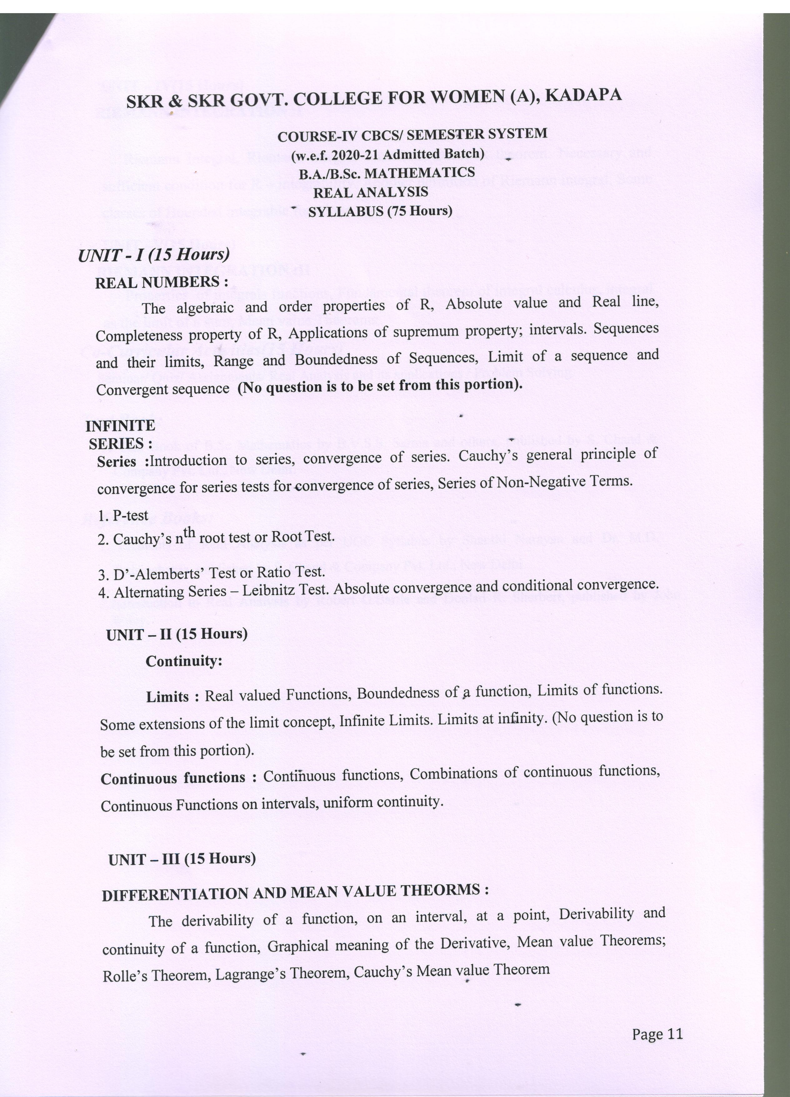 II B.Sc SEMESTER - IV REAL ANALYSIS |